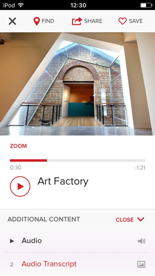 The tour invites you to pause, look and listen at different points throughout the Art Gallery. You can listen to a curator’s viewpoint, notice an artwork, appreciate a feature of the building, hear about the former life of the site as a technical college, and be inspired by artists talking about their work. The total tour takes about 35 minutes.