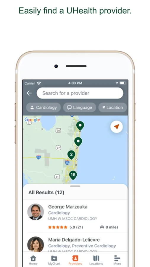 • GPS-enabled turn-by-turn navigation to UHealth locations