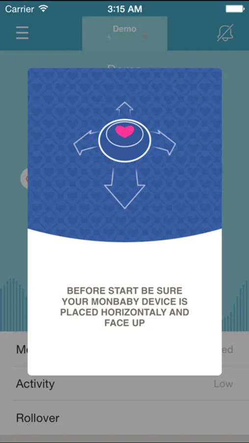 The app must be used with the MonBaby Smart Button Monitor. In a demo mode, it works with an internal iPhone accelerometer.