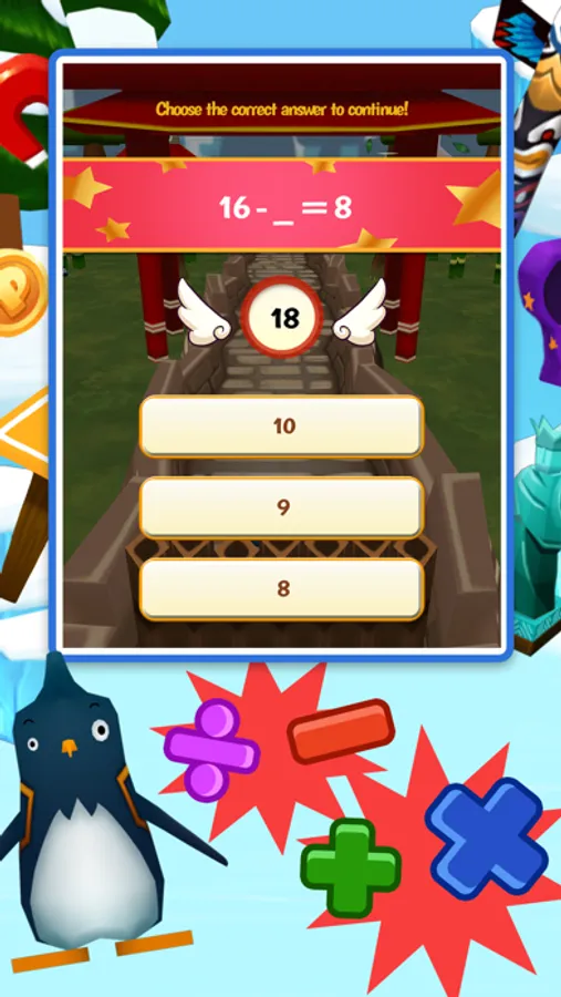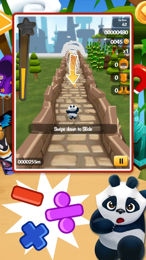 Help a cute little panda escape a big bully by using fast reflexes and the power of mathematics! Have fun learning as you test your speed and wit by running, avoiding obstacles, and solving various math problems in this action-packed edutainment app!