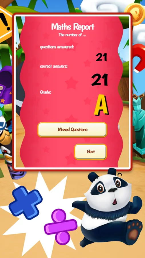 - Play as the cute and clever Panda, or 4 other cute animals, each with its own math specialty