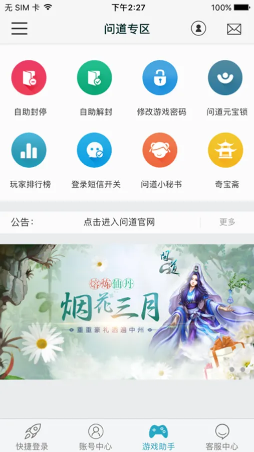 6、问道自助封停帐号。发现异常信息,只要手机在手,即可进行自助封停,角色踢下线,并冻结帐号24小时,之后修改密码,及时防盗。