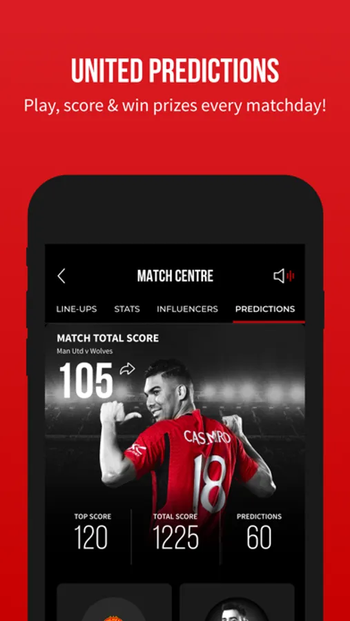 • Play and win with United Predictions! Predict the score, line-ups, first scorer and man-of-the match and win some incredible prizes along the way.