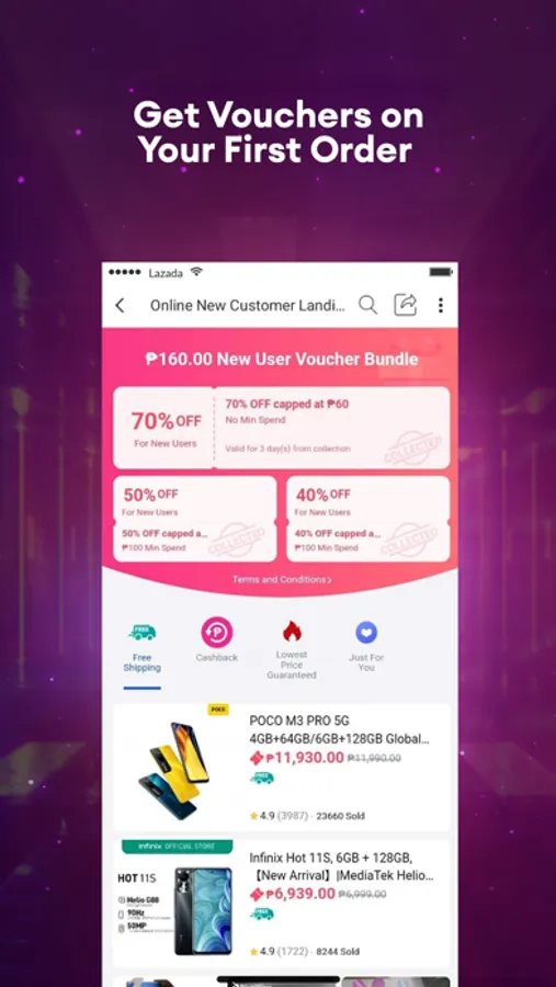 New app users can get exclusive rewards with Lazada! Avail up to 80% off & free shipping with no min. spend on your first order!