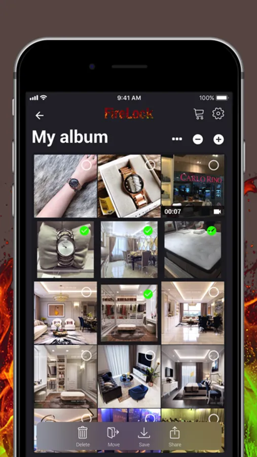 + Save pics from other apps to your secret folders: just tap the Share button and pick "FireLock" action