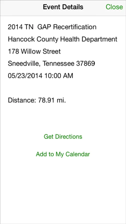 - Select an event and add that event to the calendar, or use the map to get directions to the event.