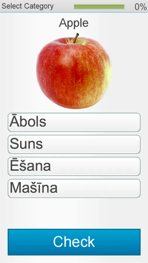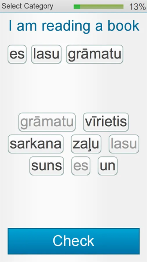 Learn Latvian by recognizing words and images, finding the missing word, completing sentences and building sentences.