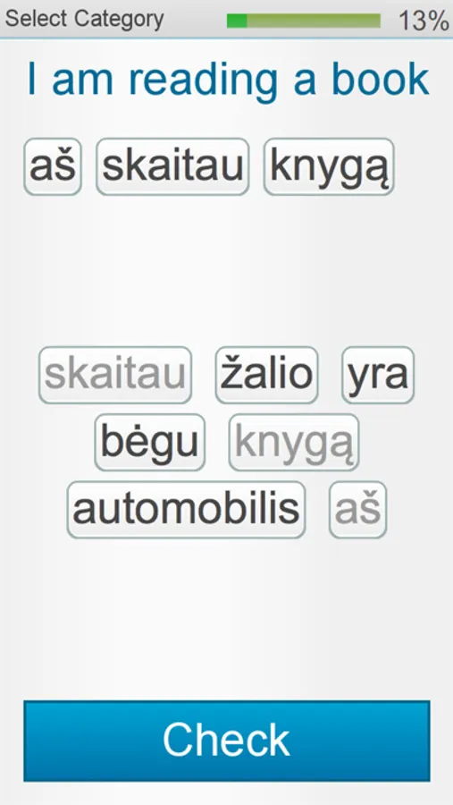 Learn Lithuanian by recognizing words and images, finding the missing word, completing sentences and building sentences.