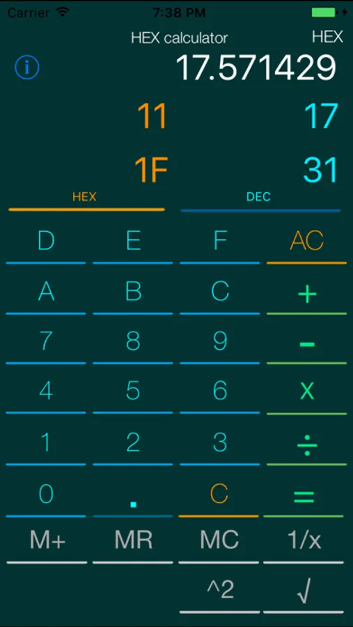 Other PRO calculator has HEX, DEC, Scientific ( float) MODE and function. But that need to change MODE on calculating . So sometime you must Re-Enter numbers .