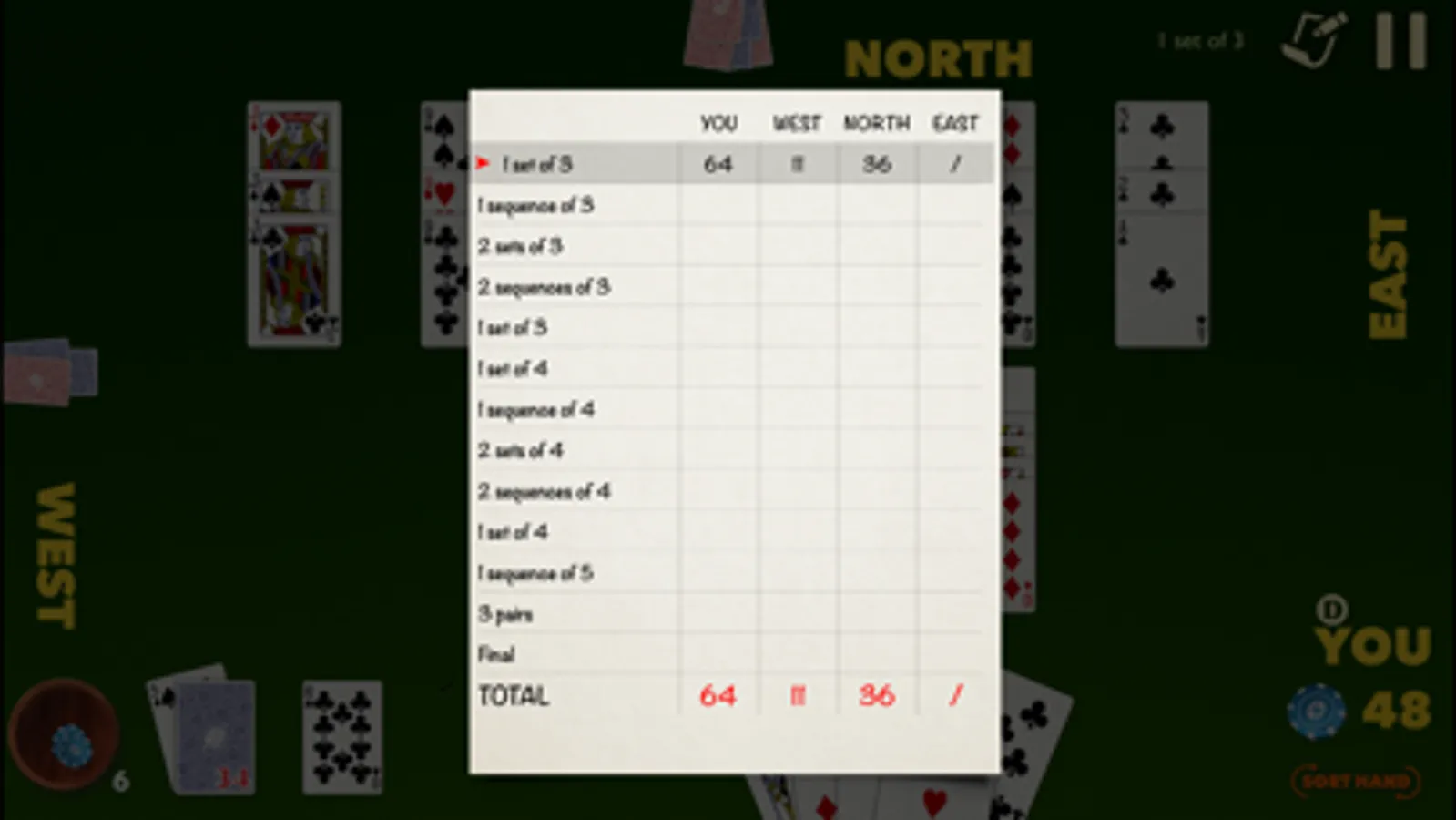 - Keys of Rounds: Each round requires that players construct predefined combinations as their first meld.