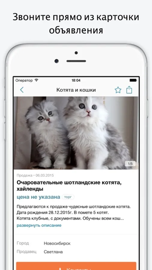 — просмотр объявлений с контактами продавца, звонок из приложения;