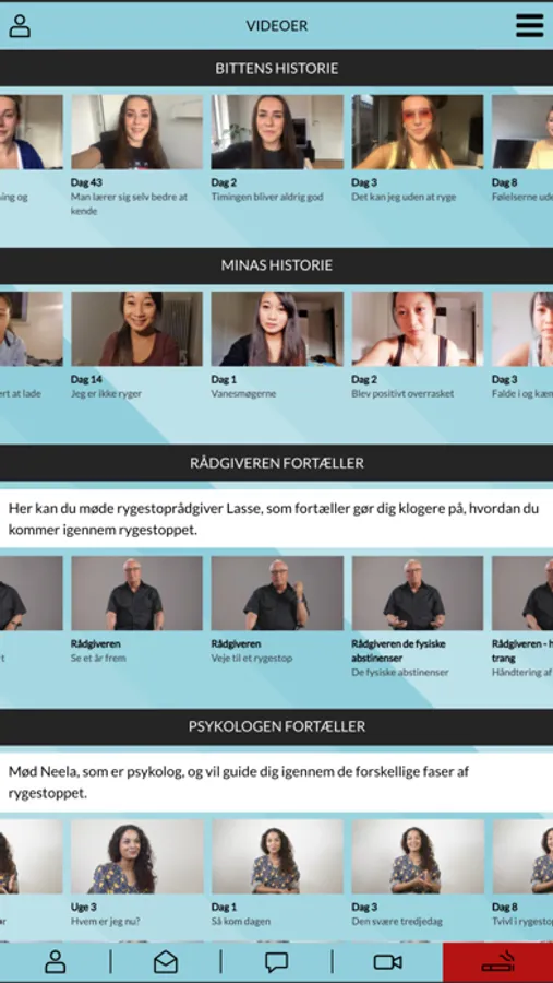 Start dit rygestop og få personlige beskeder, øvelser og videoer, når du har brug for en hjælpende hånd til at lade smøgerne ligge. Eller test din rygning og find ud af, hvilken type ryger du egentlig er. Du kan også dele dine erfaringer og få gode råd fra andre unge rygestoppere.