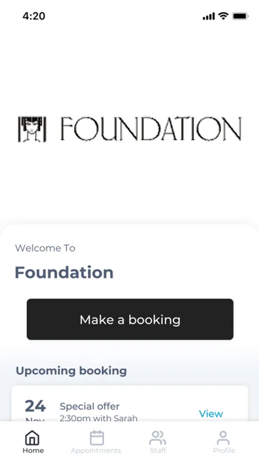 The Foundation app makes booking your appointments and managing your loyalty points even easier. You're just a few taps away from feeling good and looking great!