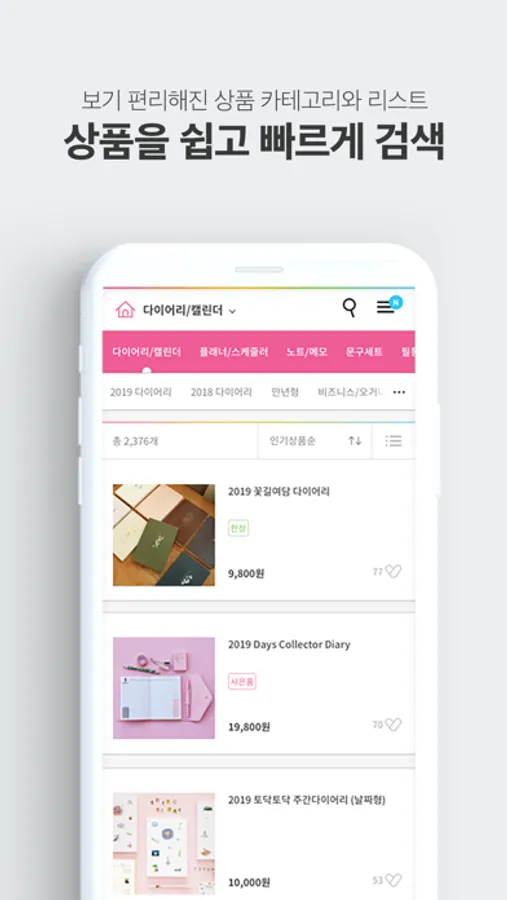 다이어리, 문구, 인테리어 소품, 패션, 펫, 유아동 등 모든 카테고리 총~ 집합