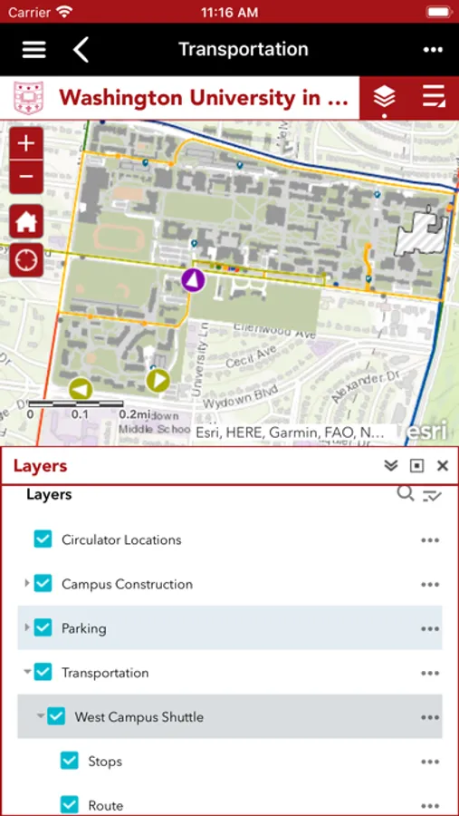 Transportation – View the location of all University-managed shuttles. Originally created by alumni Vinoo Ganesh.
