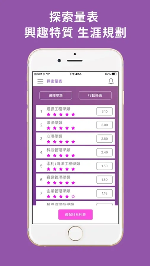 更可透過探索量表與即時的戰友分析深入的分析志願興趣,選中升學最佳方向!