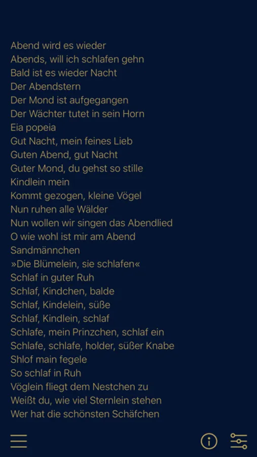 Sing your child to sleep with the most beautiful lullabies, and find your own peace in the process, with the app from the award-winning Liederprojekt. In addition to sheet music and verses for 28 German lullabies and lullabies, the app offers beautifully arranged instrumental versions for you to get acquainted with and sing along. With the captivating illustrations by Frank Walka, the Lullaby App brings joy to children and parents alike, allowing you to experience the most beautiful and intimate moments with your child.