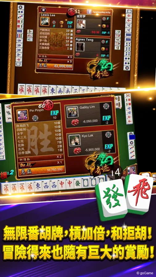 4。麻將3P玩家可以贏超過10番,番數越大贏得的籌碼將會加倍