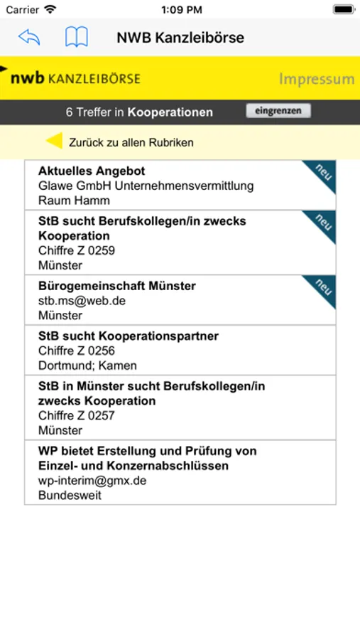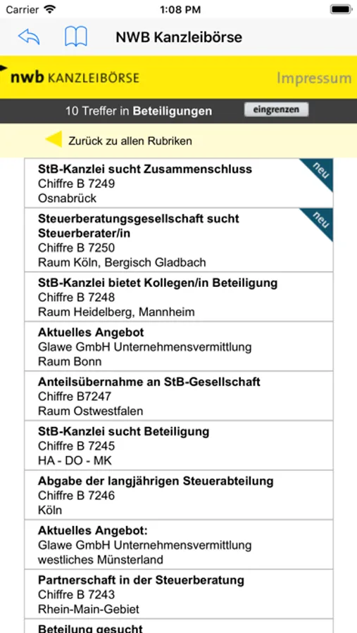 Bundesweite Angebote oder zielgerichtet aus dem jeweiligen Bundesland: Mit der App zur NWB Kanzleibörse finden Sie Nachfolger, Kooperationen, Kanzleiräume und Steuerkanzleien zur