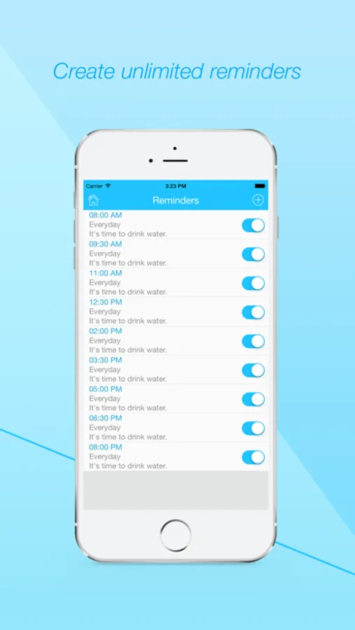 ⁃ Custom water drinking schedule. (Create unlimited reminders.)
