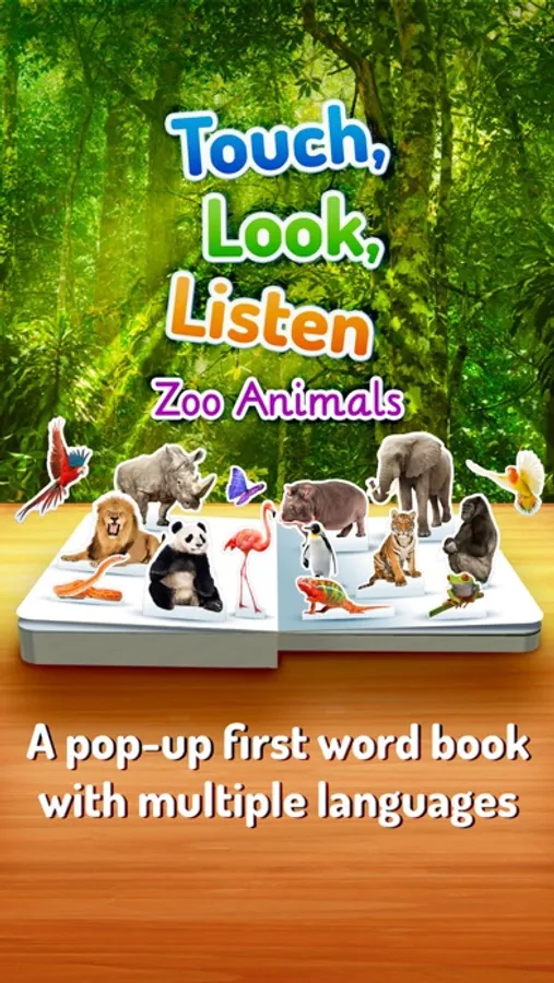 Zoo Animals is just like a real book, so it's easy to find your way around. Each page is introduced by a playful rhyme, while bright and colorful images pop-up magically as each 3D scene opens. When your child taps a picture, they see and hear the associated word, making this a powerful tool for learning new words as well as reinforcing those they already know. With the second language option, they can explore other languages too, including Spanish, Chinese, French and German.