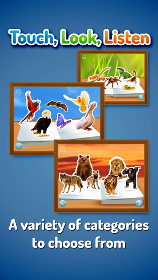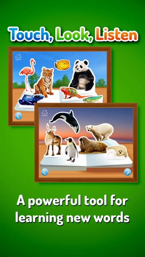 Touch, Look, Listen is a series of preschool learning apps for tablets and mobile phones that will delight and encourage young children as they learn their first words. Zoo Animals introduces early learners to over 60 popular animals from around the world. It's also the perfect app for parents and little ones to share, combining superb photographs, simple word labels and friendly narration. In addition, you can turn the app into a language-learning tool for students of all ages, simply by choosing a second language in the menu.