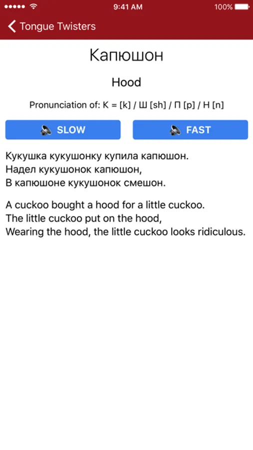 Russian tongue twisters translated into English to listen, read, practice and smile. Tongue twisters is a fun way to practice pronunciation, learn new vocabulary and grammar.