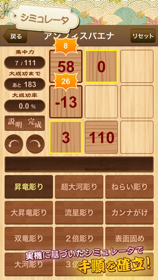 大成功作りをアシストするシミュレータ、自分で値を設定して使える計算機、すべての木工装備・家具をカバーしたレシピ帳という3つのモードで、木工ライフをトータルプロデュースいたします。