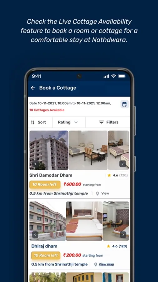 You can also view vacant cottages and book them in advance for a comfortable stay from anywhere through the Cottage Booking feature in the Shrinathji Mobile App.