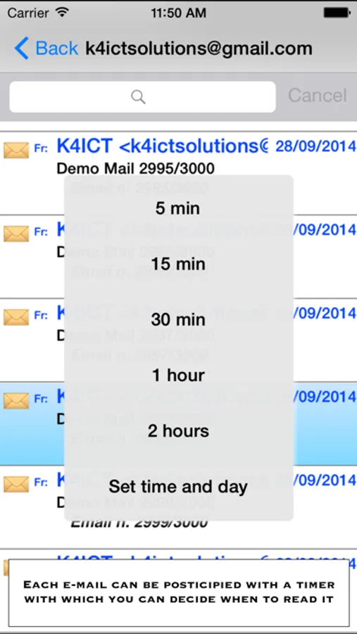 - it permits to posticity/program e-mails; the user can decide, with a programmable timer, when the user has to be notified;