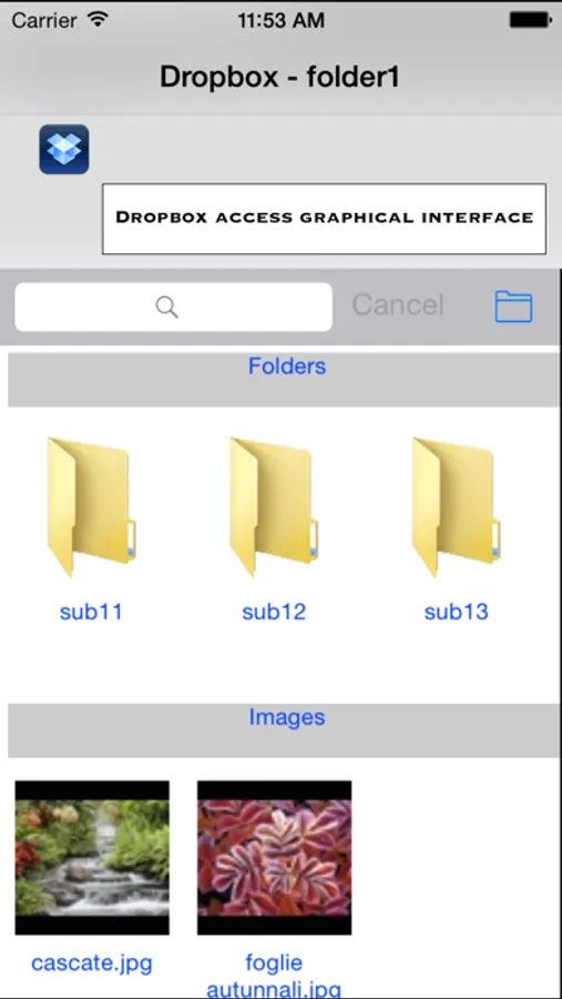 - it integrates with Dropbox; the user can access to his Dropbox repository with his username and password, so that to download and upload files such as any other Dropbox client application;