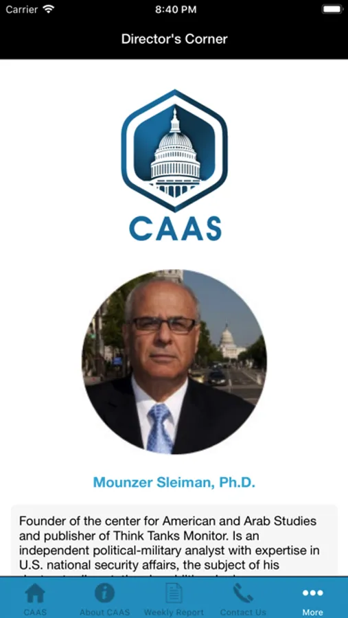 The Center for American and Arab Studies in Washington, D.C. (CAAS) is a US-based, non-profit research and outreach institution. It analyzes U.S. domestic and foreign policy to provide a reliable source of expertise on political, ideological, cultural, economic, and historical factors affecting U.S. policies towards the Arab world.