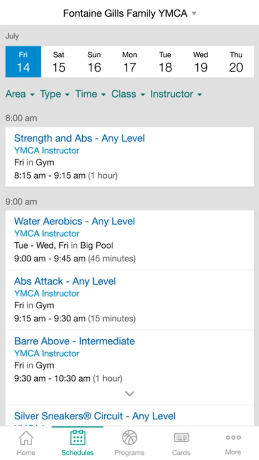 • Easily view schedules for each day and filter for the types of classes that you like.