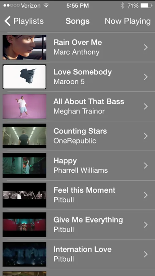 • Pick a video from any of your favorite playlists. You can also shuffle or play straight through any playlist.