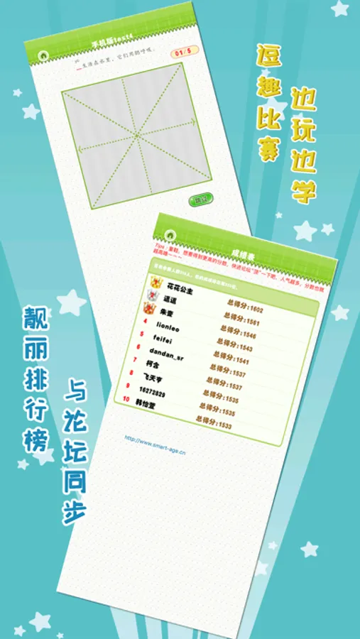 * 排名榜和重赛功能,积极的激发孩子的竞争意识,更有意想不到的大奖等待赢取。