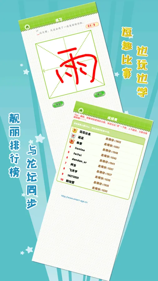 * 排名榜和重赛功能,积极的激发孩子的竞争意识,更有意想不到的大奖等待赢取。