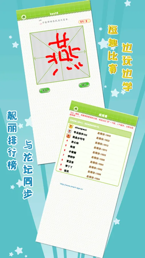* 排名榜和重赛功能,积极的激发孩子的竞争意识,更有意想不到的大奖等待赢取。