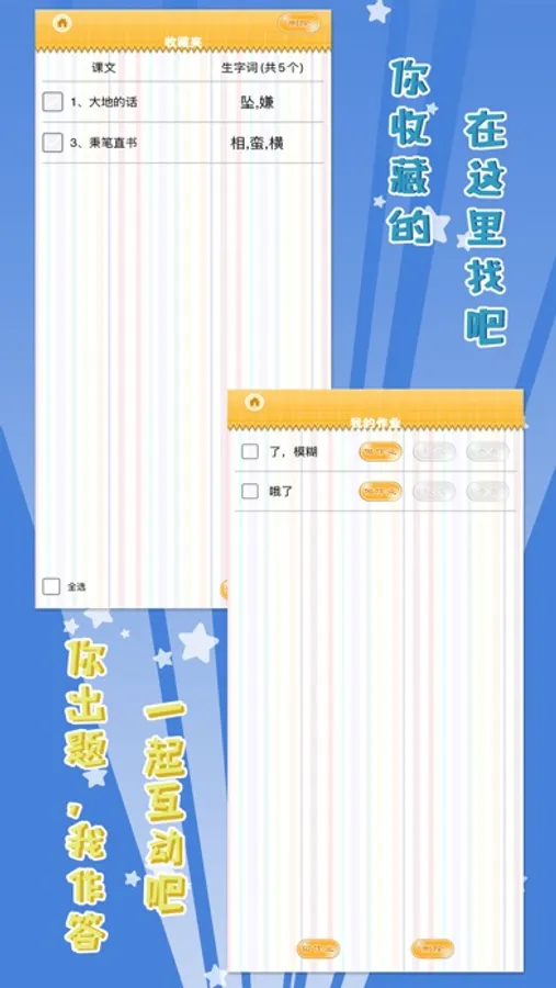 * 在生字词的学习过程中,针对需要加深的生字进行汇总,可以更为系统的学习练习。