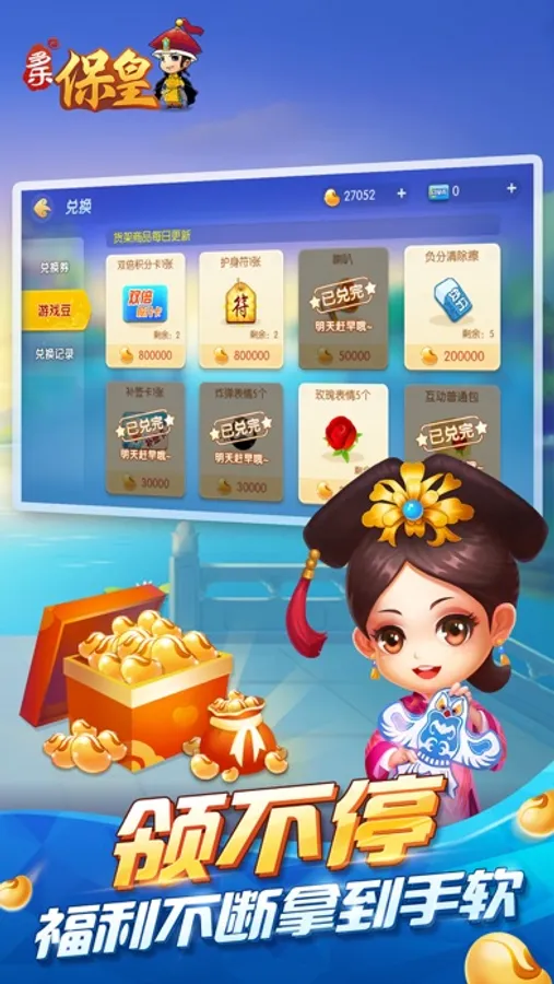 多乐保皇中每日可通过多种途径领取游戏豆,签到、分享、任务让你豆豆拿不停。
