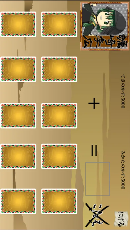 都道府県を選択し、その都道府県の有名な戦国武将と算数バトルを行います。