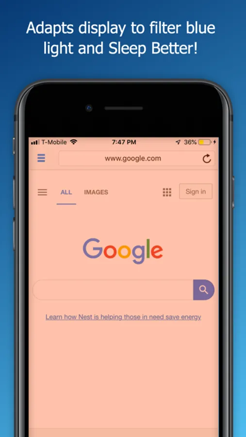 The Koala™ Web Browser filters out the blue light to create a healthy, energizing sleep cycle. It is the first web browser that cares about your sleep quality! Koala™ makes the color of your iDevice display adapt to the time of day, warm at night and like sunlight during the day. All automatically!