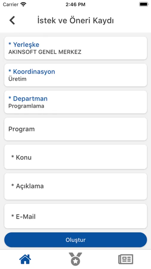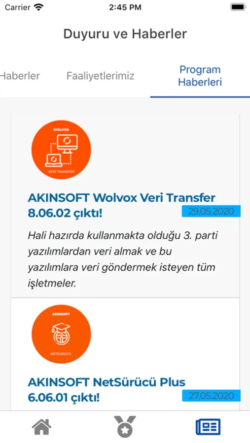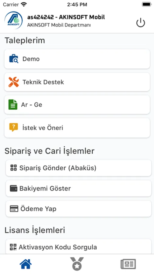 AKINSOFT resmi uygulamasıdır. Müşterilerimiz uygulama sayesinde bağlı oldukları çözüm ortaklarını, satın aldıkları programları ve bunların içerdiği modülleri takip edebilir, ar-ge talebinde bulunabilir, istek ve önerilerini hızlı bir şekilde iletebilirler. Çözüm ortaklarımız kendi bayi kodu ve şifreleri ile giriş yapabilir, kendilerine yöneltilen demo ve teknik destek taleplerine anında ulaşabilirler. Demo ve teknik destek kayıtlarına açıklama girebilir, istedikleri alt bayilerine tekrar yönlendirme yapabilirler. Henüz müşterimiz ve çözüm ortağımız olmayan kullanıcılar ise AKINSOFT ve programları hakkında detaylı bilgiye ulaşabilir, bulundukları bölgedeki çözüm ortaklarına ulaşabilir, demo talebinde bulunabilirler.