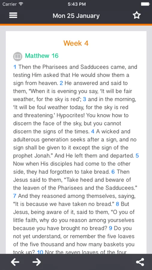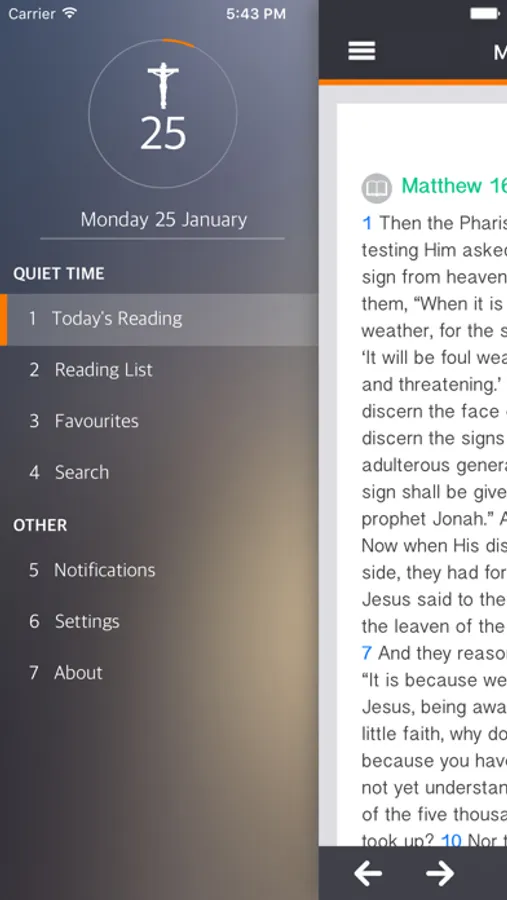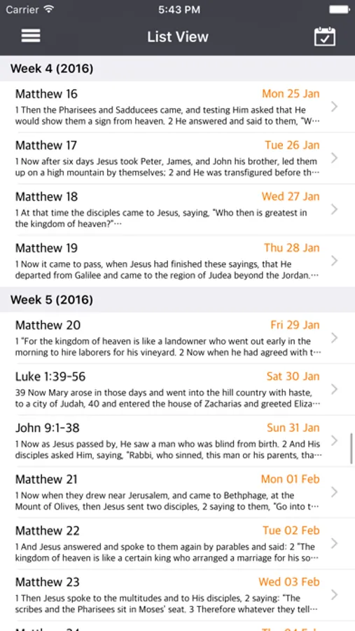 - Browse readings that you have missed, and read future readings by navigating to the list view
