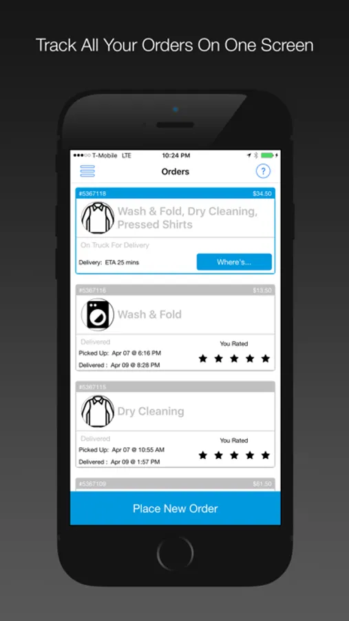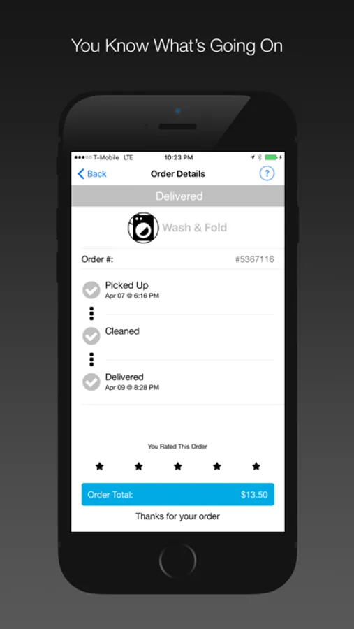 You will get updated on the status of your laundry from washing, drying to when we are on our way to deliver back to you.