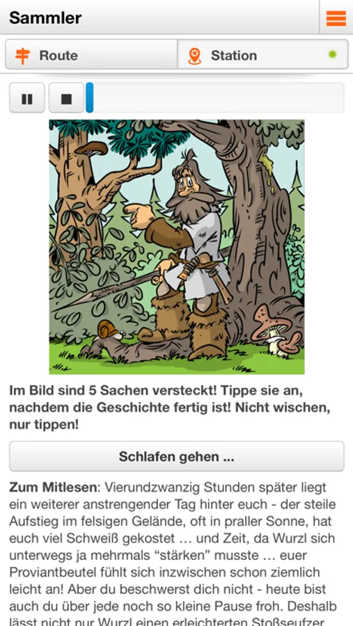 Explore routes, listen, see and solve puzzles. All games have a sequence of spots to visit. Each spot has a route-description and content. The route gives players tools to find the next spot: text-descriptions, images, audios, a compass, a direction arrow, or a distance meter. Using GPS positioning or QR codes, the various contents at the spots are unlocked. It is therefore necessary to find real places by means of different aids in order to find the previously hidden game contents and then collect points for the solved tasks.