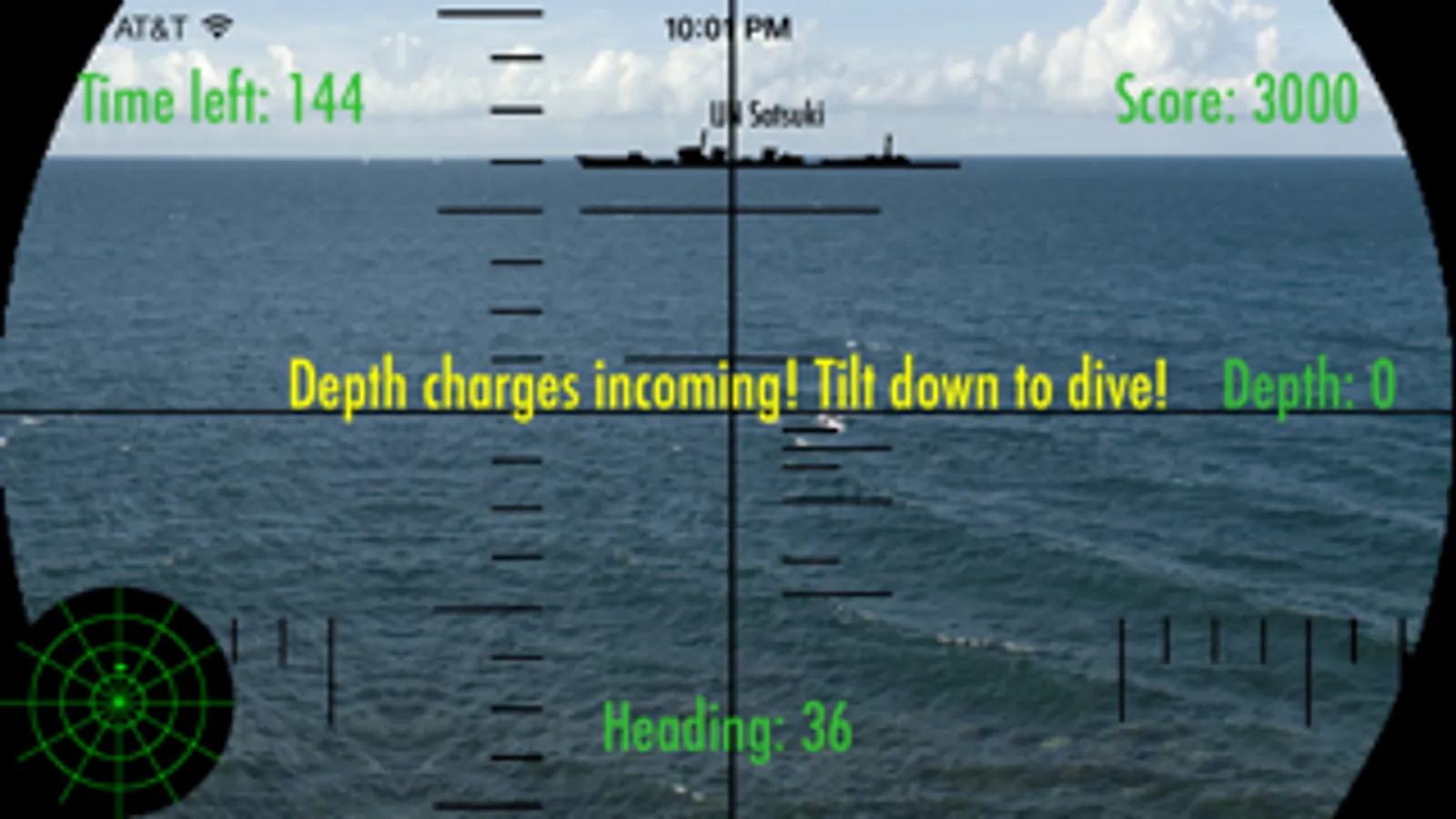 Tilt the phone left or right to scan the seas, or use sonar to spot approaching ships. Tap the screen to shoot. Tilt the phone down to submerge and dodge depth charges.