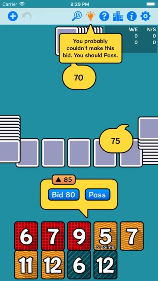 Bidding: Players bid for the right to name the trump suit. The player to the left of the dealer starts the bidding at 70 (or passes), and bidding proceeds to the left, usually in 5 point increments. A player that passes is out of the bidding for that hand.