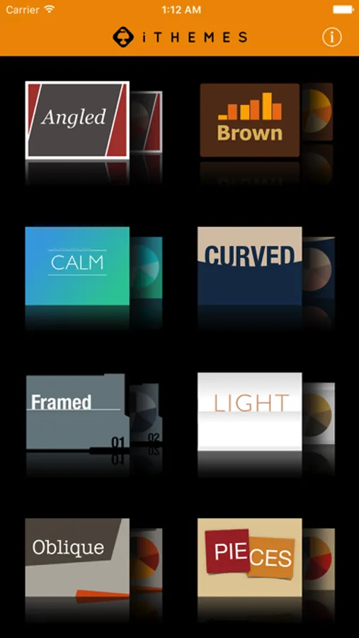 "iThemes for Keynote" offers a set of 14 professionally designed, high quality and easy to use themes for Keynote. All themes come in two sizes (1024x768 and 1920x1080) and include 20 master slides (12 standard and 8 additional), custom designed matching tables and charts.