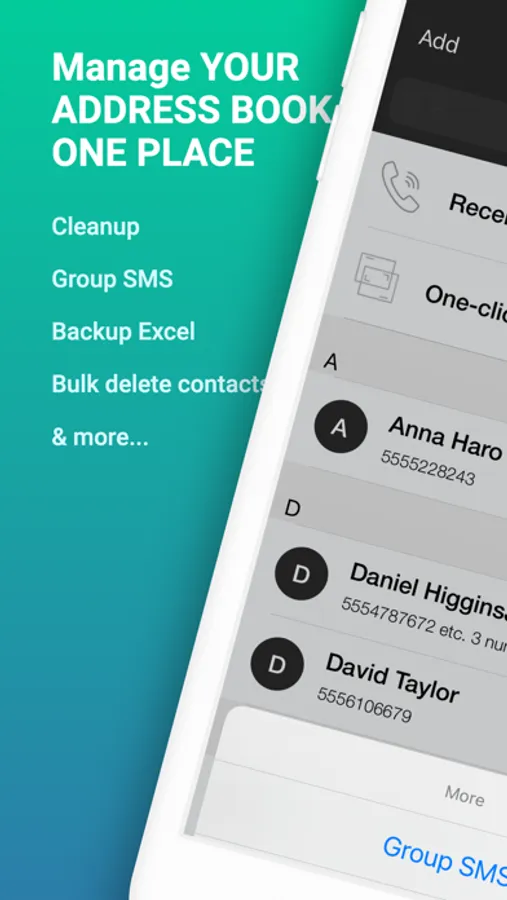 Cleans address book intelligently, rejects zombie contacts, merges duplicate contacts.