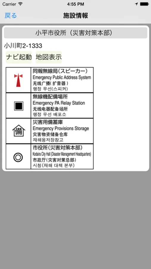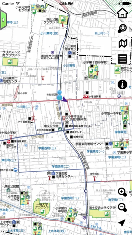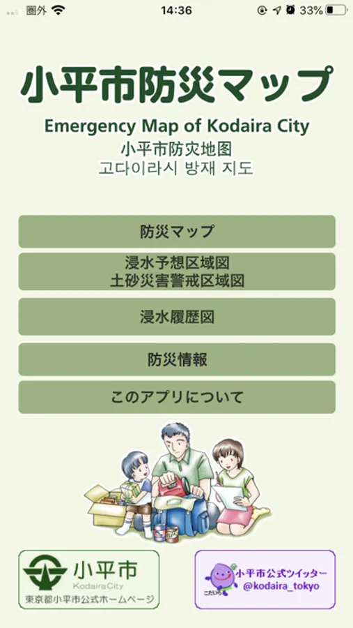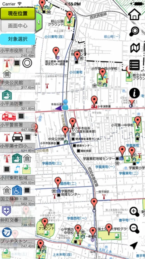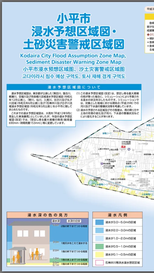 小平市の防災マップ/防災情報をスマートフォンで閲覧するアプリです。